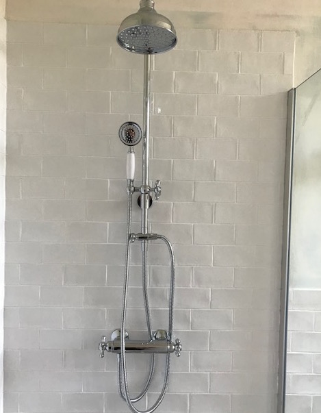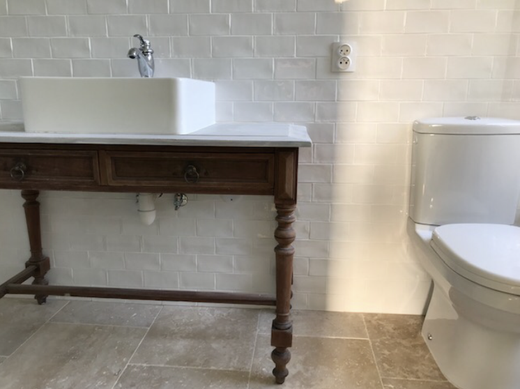 Ik was al lang ontzettend blij dat ik niet met een half afgeleverde badkamer bleef zitten. Ik zag het al voor me: leuke vloer, geen wc, halve douche, mooi bad op pootjes, maar geen warm water!